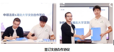 会上,中顺洁柔与湖北大学资产公司(湖北大学文创中心)达成“湖北大学洁柔文创产品定制意向合作”,并现场签署了文创合作与活动共建框架协议。