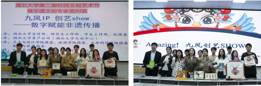 11月16日,我校“荆楚神韵,文创之光”第二届校园文创艺术节之非遗文创专家面对面活动在长江新区校区问津楼举行,湖北大学艺术与设计学院教授、湖北省非物质文化遗产研究中心(湖北大学)主任周丽玲以“九凤IP创艺show——数字赋能非遗传播”为题的讲座吸引了近300名学生到场聆听。讲座由资产公司副总经理许良发主持,湖北大学第二届提案征集大赛校园文创研究团队、集邮与收藏协会和九凤创艺SHOW社团负责人参加活动。