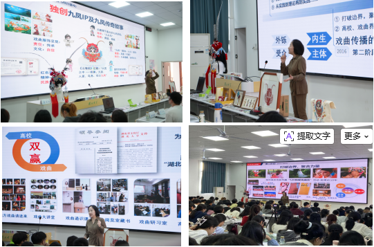周教授介绍,作为一名湖北地方戏曲传播领域的深耕者,在目睹戏曲受众少、传播方式陈旧等多重发展困境后,她以创新路径破局,在高校组建戏曲社团、牵头成立全国首个地方戏曲高校传播中心,成功推动戏曲非遗与高校资源的深度对接。