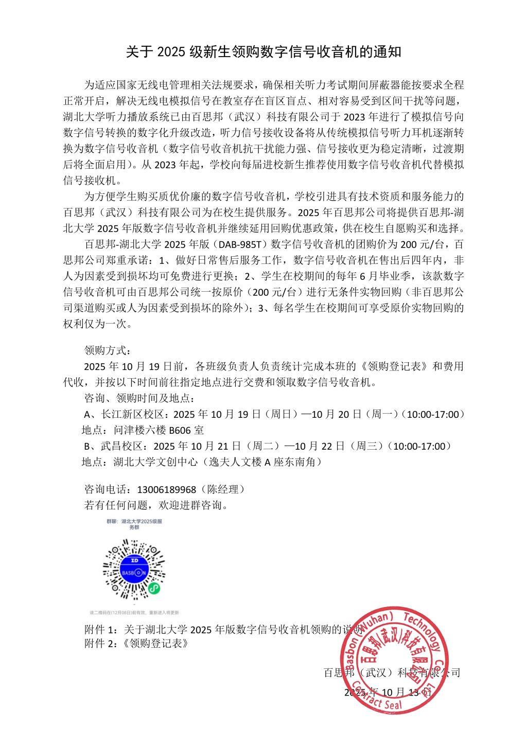 根据学校工作安排,现将《关于2025级新生领购数字信号收音机的通知》转发发布如下:
