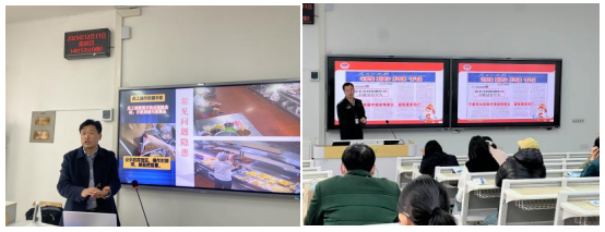 培训会上,湖北优学食安教育科技有限公司武汉培训中心主任艾海涛从食品安全重要性出发展开详细讲解,通过直观展示和重点分析涉及到食品采购、储存、加工、餐具消毒、人员管理等场景的实例图片对比以及典型错误操作,让大家对食品安全与操作规范有了更全面、深入的认识。来自湖北省楚消安消防知识宣传中心的罗教官则从火场自救方法及常用消防工具等内容出发,结合大量触目惊心的图片、视频向大家讲述了常见火灾原因,全面介绍了如何扑救初期火灾、如何使用灭火器以及火灾中如何自救逃生等知识,多次提醒大家以案为诫,汲取教训,增强校园消防意识,不断提高自身应对火灾突发事件的应急处置能力。培训活动在公司副总经理许良发的总结强调与其主持开展的安全常识有奖问答互动中顺利结束。