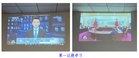 会议还学习了中共中央政治局第二十三次集体学习会议精神(健全网络生态治理长效机制,持续营造风清气正的网络空间)和12月8日中共中央政治局会议精神(分析研究2026年经济工作、审议《中国共产党领导全面依法治国工作条例》),并对学习中共湖北省委十二届十一次全会精神和12月5日省委常委会会议精神等个人自学内容进行了布置。